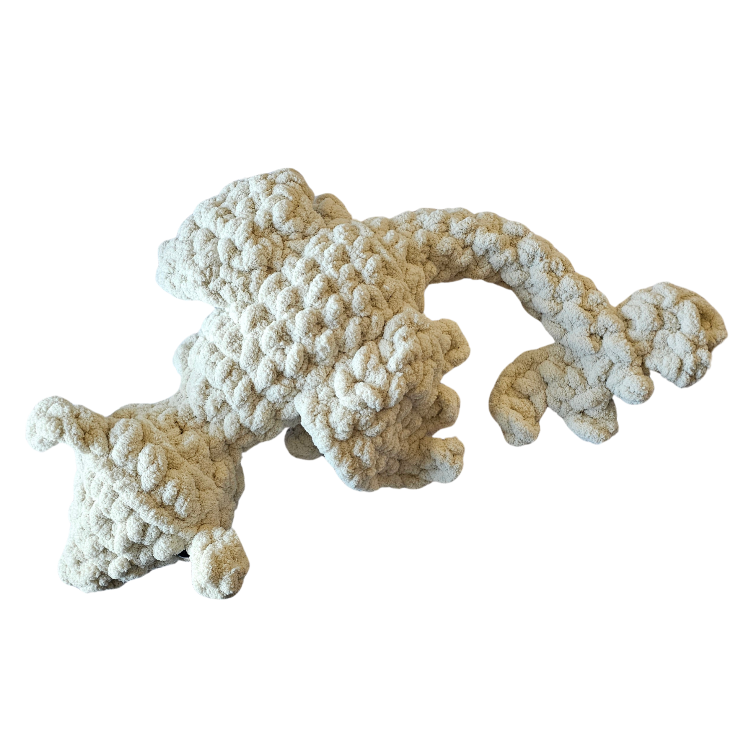 Ze względu na użytą włóczkę, ten smok wykonany na szydełku jest bardzo miły w dotyku. Idealny jako maskotka lub dekoracja.