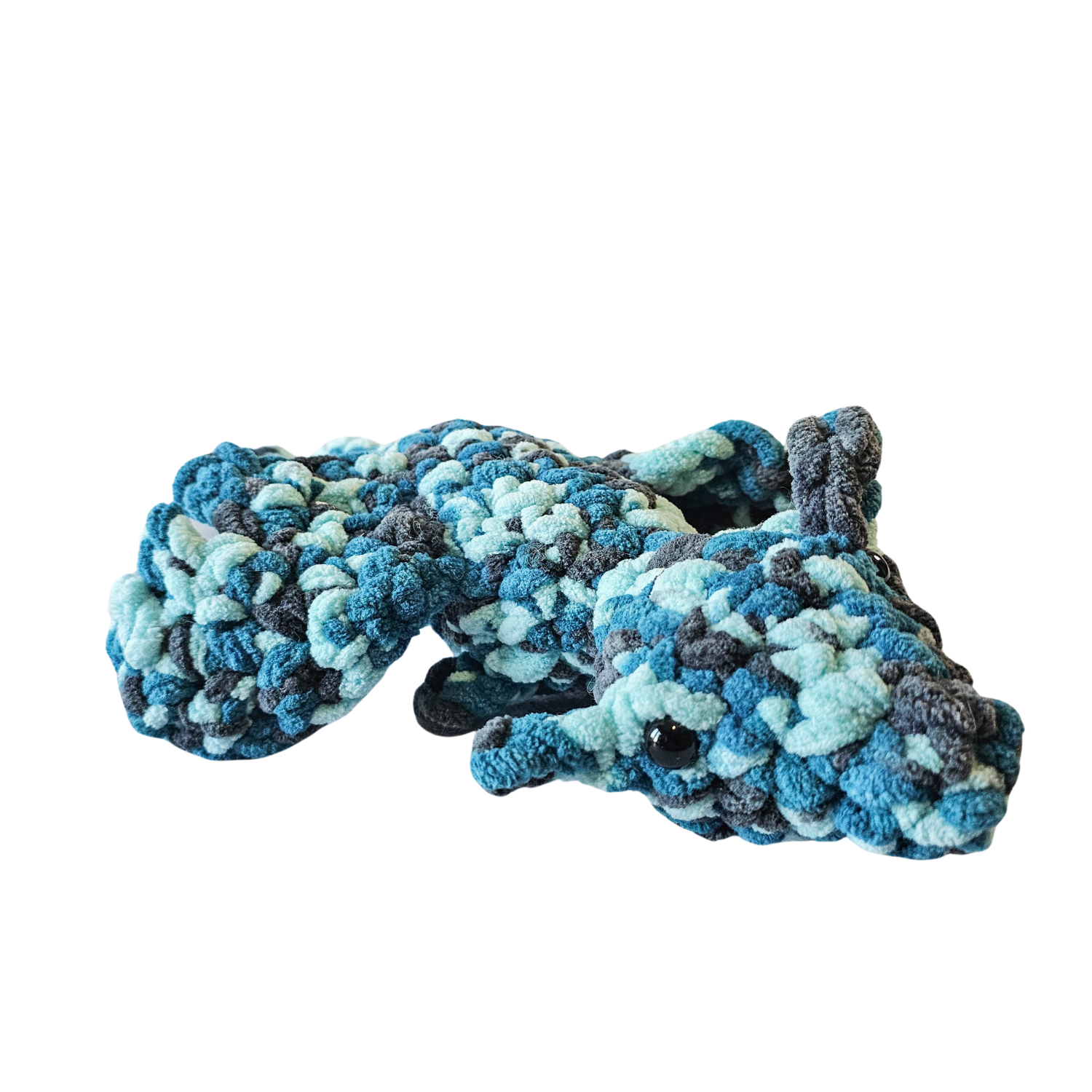 Ze względu na użytą włóczkę, ten smok wykonany na szydełku jest bardzo miły w dotyku. Idealny jako maskotka lub dekoracja.